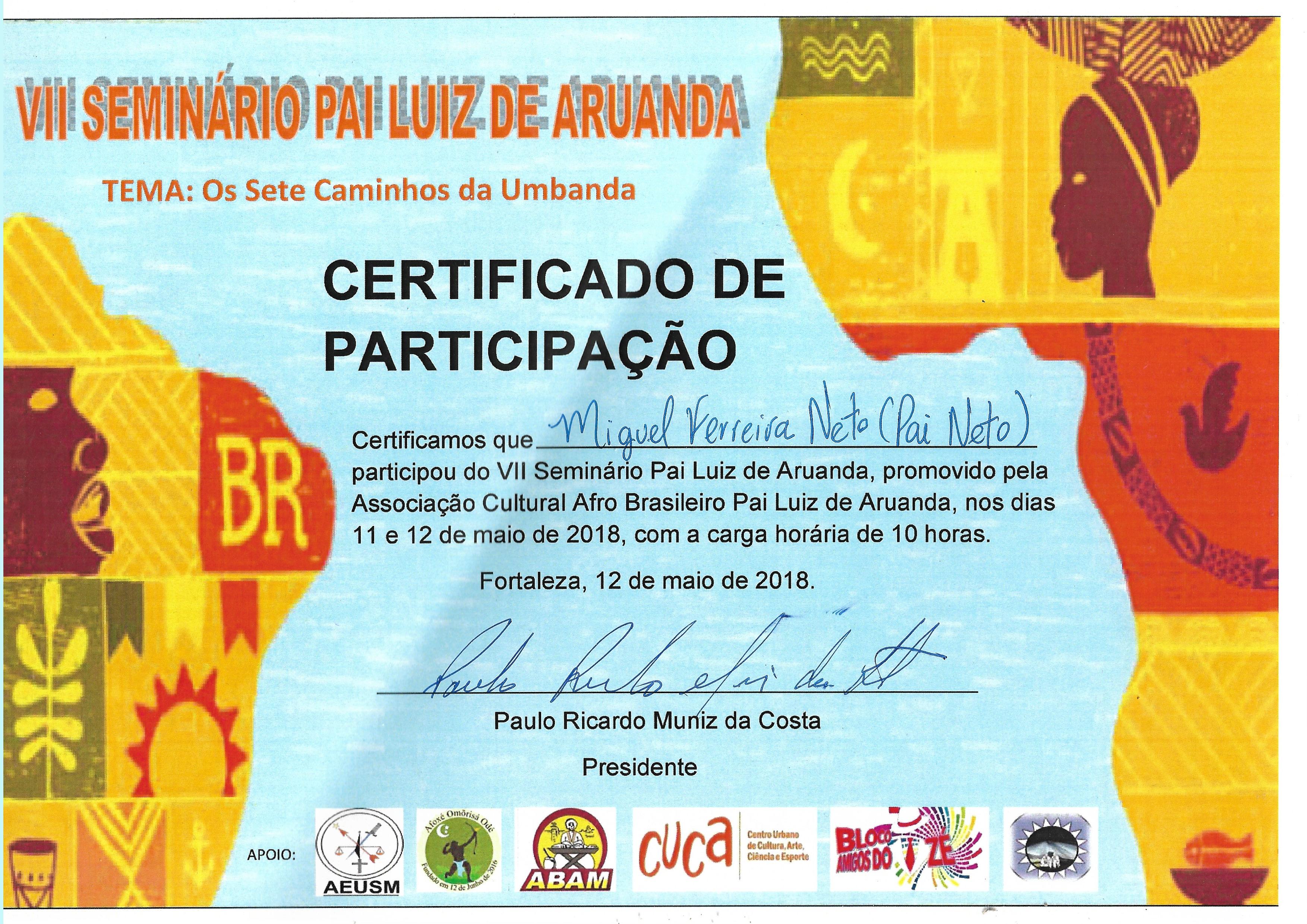 Presidente da Associação Espirita de Umbanda São Miguel de 1997 a 2005;