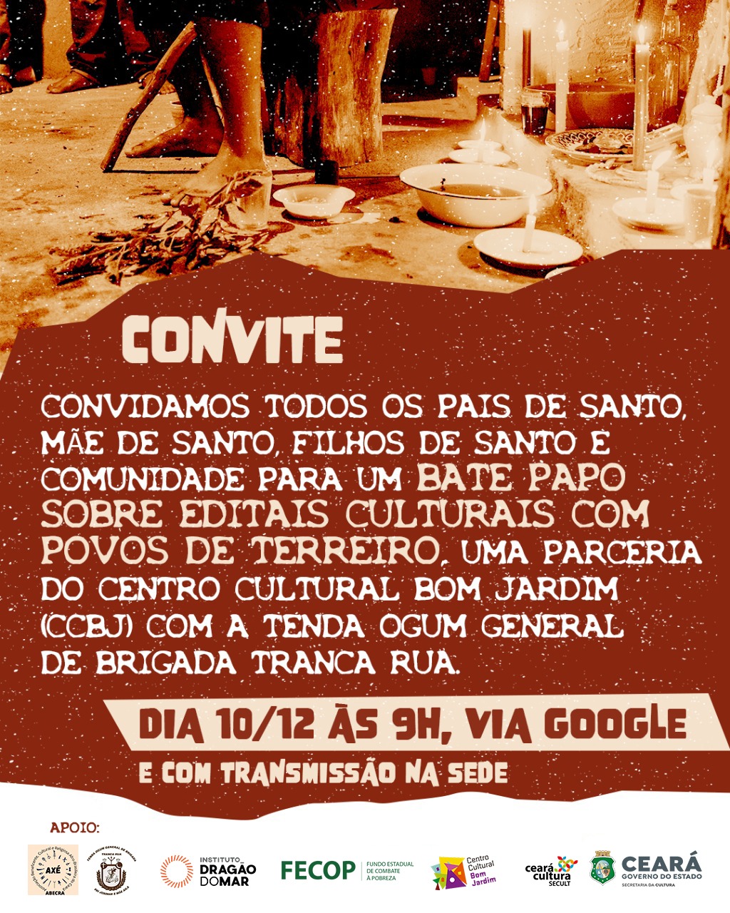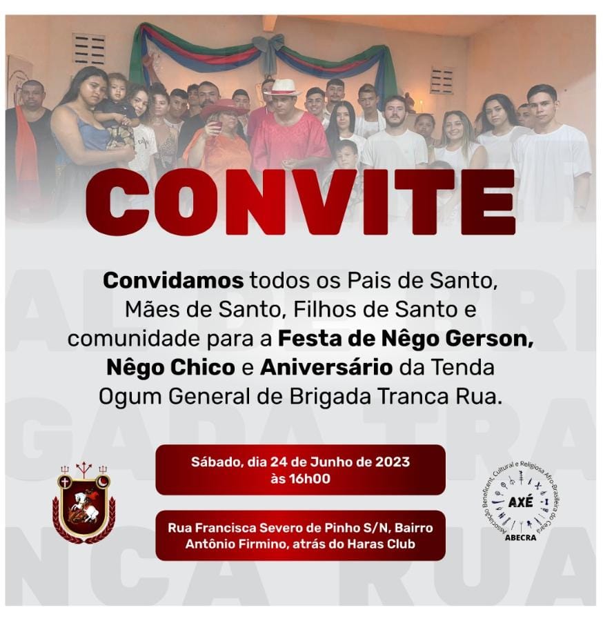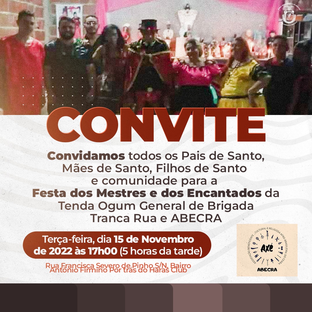 ponto de cultura nacional a Associação Beneficente, Cultural e Religiosa Afro-Brasileira do Ceara, legalizada judicialmente em cartório oficio notas e registro de Madalena Assis Bezerra em 27/11/2020, fundada em 26 de agosto de 2020, tendo à frente como presidente, Josimar Alves Torres Serafim (pai Josimar de Tranca Rua). A Associação trabalha na perspectiva da construção de políticas públicas para a Igualdade Racial .
